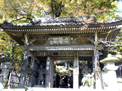| 富貴寺の入口です。両脇には仁王像があります。石造りです。 |