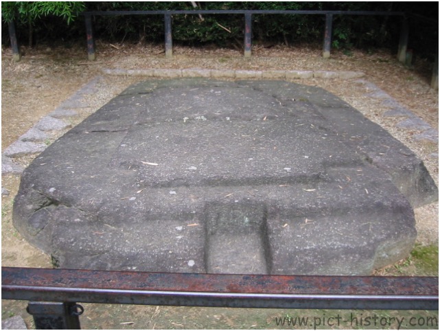 もとは上円下方墳だったと推定されています。もり土が失われ、巨石を利用した玄室が露出した形で残されています。1933、34、54年と調査が行なわれ、墳丘の規模が確認されました。すなわち、墳丘は一辺51メートルで、周囲には、南北83メートル、東西81メートルの外堤をもっていたことなどが分かりました。現在は明日香村にあるもののうち、飛鳥時代を代表する遺跡として、周辺がよく整備されて残っています。(奈良県高市郡明日香村)