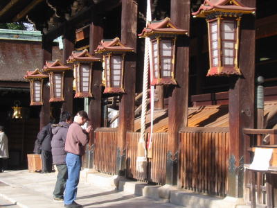 【北野天満宮】北野天満宮の祭神は菅原道真です。大宰府に左遷されて二年後になくなり、死後は怨霊となって京都に災いをもたらしたとされていますが、もともと道真は、奈良時代からの学者の家柄に生まれ、自身も文章博士となっていた関係で、江戸時代以降は、寺子屋などでの教育の際、学問・芸道の神として崇められるようになりました。現在でも多くの受験生の信仰を集めており、参拝者が絶えません。