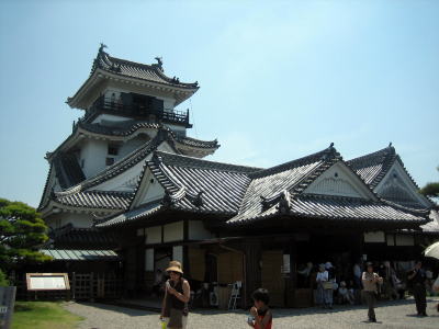 【高知城】外観は三層ですが内部は六階建てとなっています。高欄の下の層を重視して四層と見る専門家もいます。最上階は高欄をめぐらした望楼となっていて、望楼式あるいは開放式天守とよばれています。