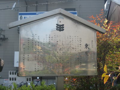 【東屋】宇治橋東詰、京阪宇治駅にほど近い場所にある東屋観音とよばれている場所が、東屋の古跡となっています。